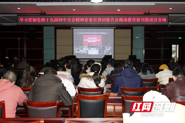 “这场报告很及时,很重要,让我们更快、更好地领会了党的十九届四中全会精神。”红网员工吴俊阳说,下阶段我们将在学懂弄通做实上下功夫,把全会精神融入到工作当中。