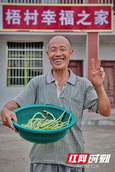 陈远生今年64岁,是梧村的五保老人。因为贫穷,一直独身的他长期居住在侄儿家。驻村工作队来了之后,为了让村里60岁以上的五保老人老有所居、老有所养,专门为其建起了一栋“幸福之家”。“幸福之家”水电、设施齐全,不仅可以拎包入住,还定期有医生为老人做体检。起初还不情愿的陈远生,在工作队的耐心开导下,才与另外一位五保老人试着住进来。如今,他们已在这里种植当季蔬菜、瓜果,闲时一起聊天、做饭,打造了属于自己的晚年天地。