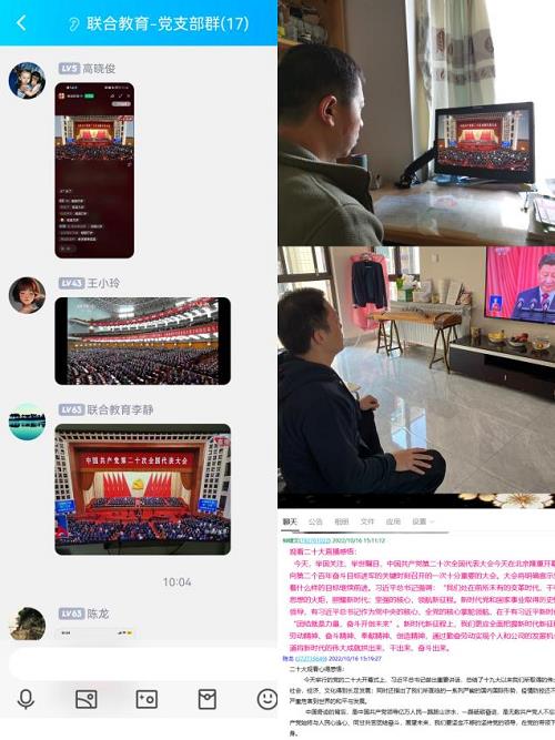 公司全体党员、全体青年员工也通过线上微信群、QQ群集中收看了党的二十大开幕会,并在线上参与讨论与交流。